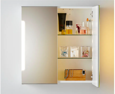 Il existe de nombreuses solutions de rangement modernes pour la salle de bains qui peuvent vous aider à garder votre meuble-lavabo clair et organisé, comme ce miroir de rangement IKEA STORJORM.
